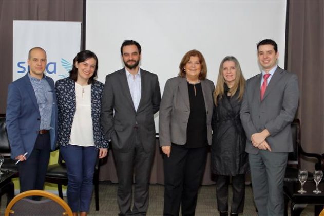El panel estuvo integrado por el Gerente General de AFAP SURA Sebastián Peaguda, la Directora del Banco de Previsión Social en representación del sector empresarial Cra. Elvira Domínguez, los Dres. Leticia Iglesias y Pablo Barreiro del Estudio Pescadere Peri & Pezzutti Abogados, así como la Directora de Retiro de Mercer, Ana María Weisz quien viajó desde la Argentina para formar parte de esta actividad que contó con la moderación del Lic. Leonardo Pérez Álvarez (Co Coordinador General de la SUGP).