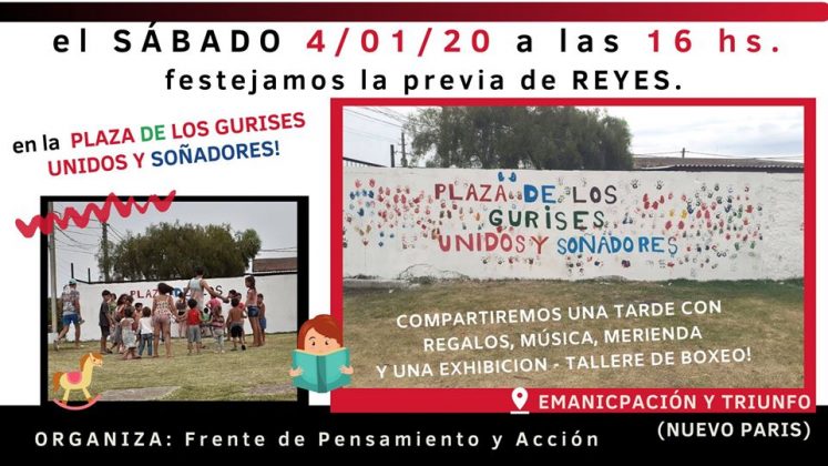 El sábado 4 de enero se festejará la previa de los Reyes en la Plaza de los Gurises Unidos y Soñadores, junto a las y los vecinos del Barrio Nuevo París, en Montevideo.