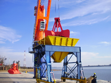 Fernández agregó que se usaron los grapos adquiridos para operar con dicha grúa y la tolva construida por los talleres de la Administración Nacional de Puertos (ANP), a tales fines.