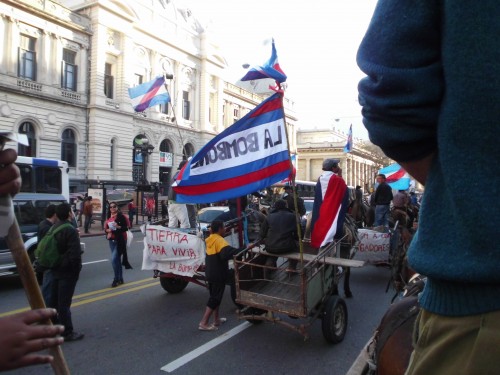 Desde temprano de la tarde todo era expectativa, los carros ensillados, la familia entera, los jóvenes, siempre vilipendiados, aprontándose para hacer historia. Y salió la caravana rumbo al Obelisco y a aparecer en el centro del país con todo el orgullo portando las banderas de Artigas y de La Bombonera. Nosotros también somos uruguayos y tenemos los mismos derechos.