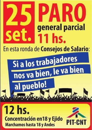 El PIT-CNT convoca a un paro general parcial con movilización para este miércoles 25 de setiembre. A continuación informamos acerca de las características que asumirá esta movilización de la central de trabajadores.
