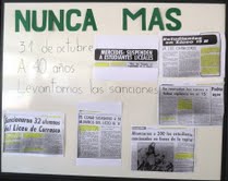 Para agasajar a los ex estudiantes que serán homenajeados, alumnos y docentes del Liceo Nº 15 prepararon una cartelera de fuerte acento testimonial, que registra, mediante recortes de diarios de la época, la peripecia individual de los educandos que fueron sancionados.