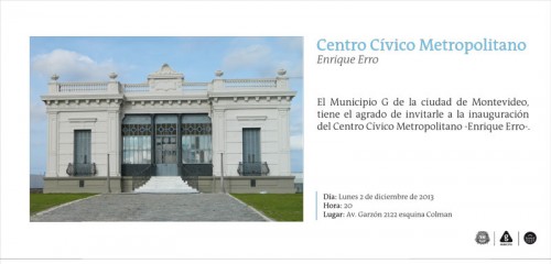 Inauguración del Centro Cívico Metropolitano «ENRIQUE ERRO», el Lunes 2 de Diciembre de 2013 a las 20:00 horas, en Avenida Garzón 2122 esquina Colman.