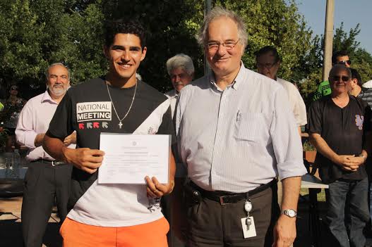Conchillas, 19 de diciembre de 2013. Se llevó a cabo en la plaza de Conchillas el acto de entrega de certificados de los cursos de capacitación que Montes del Plata impulsa desde julio de 2012 para mejorar la formación de trabajadores que se desempeñan en la construcción de su planta de Punta Pereira, Colonia.
