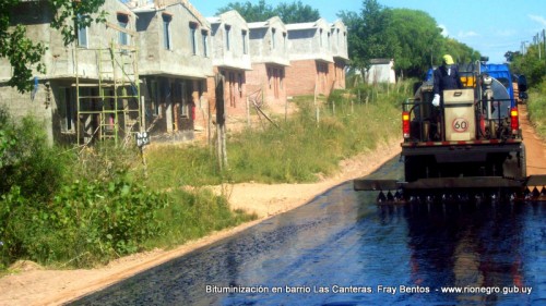 Actualmente se trabaja en barrio Las Canteras de la ciudad de Fray Bentos, realizándose el segundo riego asfáltico.