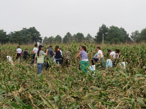 La actividad se desarrolló en la zona de Camino de los Horneros, muy cerca de La Tahona, en un predio de una hectárea y media donada por privados para el cultivo de maíz. Durante toda una mañana y parte de la tarde, integrantes de compañía, alumnos de los colegios Stella Maris y Jesús María, niños y adolescentes que asisten Asociación Madres de la Cruz, y jóvenes de Los Nicolitos participaron de la cosecha de choclos.