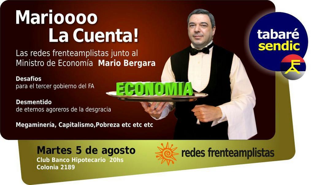 Invitado por Redes Frenteamplistas se escuchará una ponencia del ministro de Economía y Finanzas, Mario Bergara.