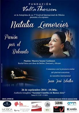 El 26 de setiembre de 2014 se realizará la ante prima del evento en el Auditorio de la Sociedad científica argentina, con un recital de la gran cantante Natalia Lemercier, soprano lírica que estará acompañada por la maestra Susana Cardonett, en una propuesta titulada «Pasión por el Belcanto» con un repertorio que comprende obras de Bellini, Donizetti y Mozart.