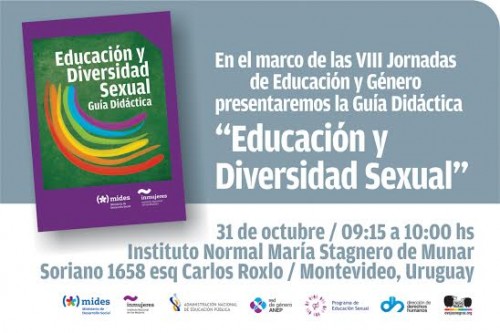 El Instituto Nacional de las Mujeres del Ministerio de Desarrollo Social  y la Red de Género de la Dirección de Derechos Humanos de la Administración Nacional de Educación Pública invitan a participar de las VIII Jornadas de Educación y Género: «EDUCACIÓN Y DIVERSIDAD SEXUAL»