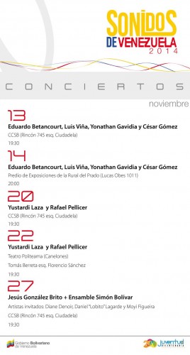 La Embajada de la República Bolivariana de Venezuela en Uruguay tiene el agrado de invitarle a la inauguración del Festival Sonidos de Venezuela en su edición 2014.