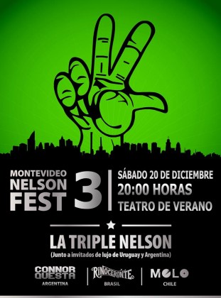 Este martes 9 a las 10.30 horas en la Centro de Conferencia de Prensa piso 1 y medio Salón Dorado de la Intendencia Municipal de Montevideo, se llevará a cabo el lanzamiento del Montevideo Nelson Fest 3. Estarán presentes los integrantes de la banda y los 8 Alcaldes de Montevideo. Es un show internacional gratuito impulsado por la banda uruguaya La Triple Nelson en coproducción con los ocho Municipios de Montevideo.
