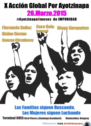 Sumándonos a la décima acción global el grupo Uruguay por Ayotzinapa convoca al festival artístico “Las familias siguen buscando, las mujeres siguen luchando”, el 26 de marzo, a las 19:30 horas, en la Terminal Goes (Gral Flores y Domingo Aramburú)