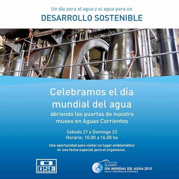 OSE: Un día para el agua y el agua para un desarrollo sostenible Mar 6, 2015 | Asociaciones y Otros | 0 | Un día para el agua y el agua para un desarrollo sostenible. Celebramos el día mundial del agua abriendo las puertas de nuestro museo en Aguas Corrientes. Sábado 21 de marzo y Domingo 22 de marzo. Horario: 10.00 a 16.00 horas.