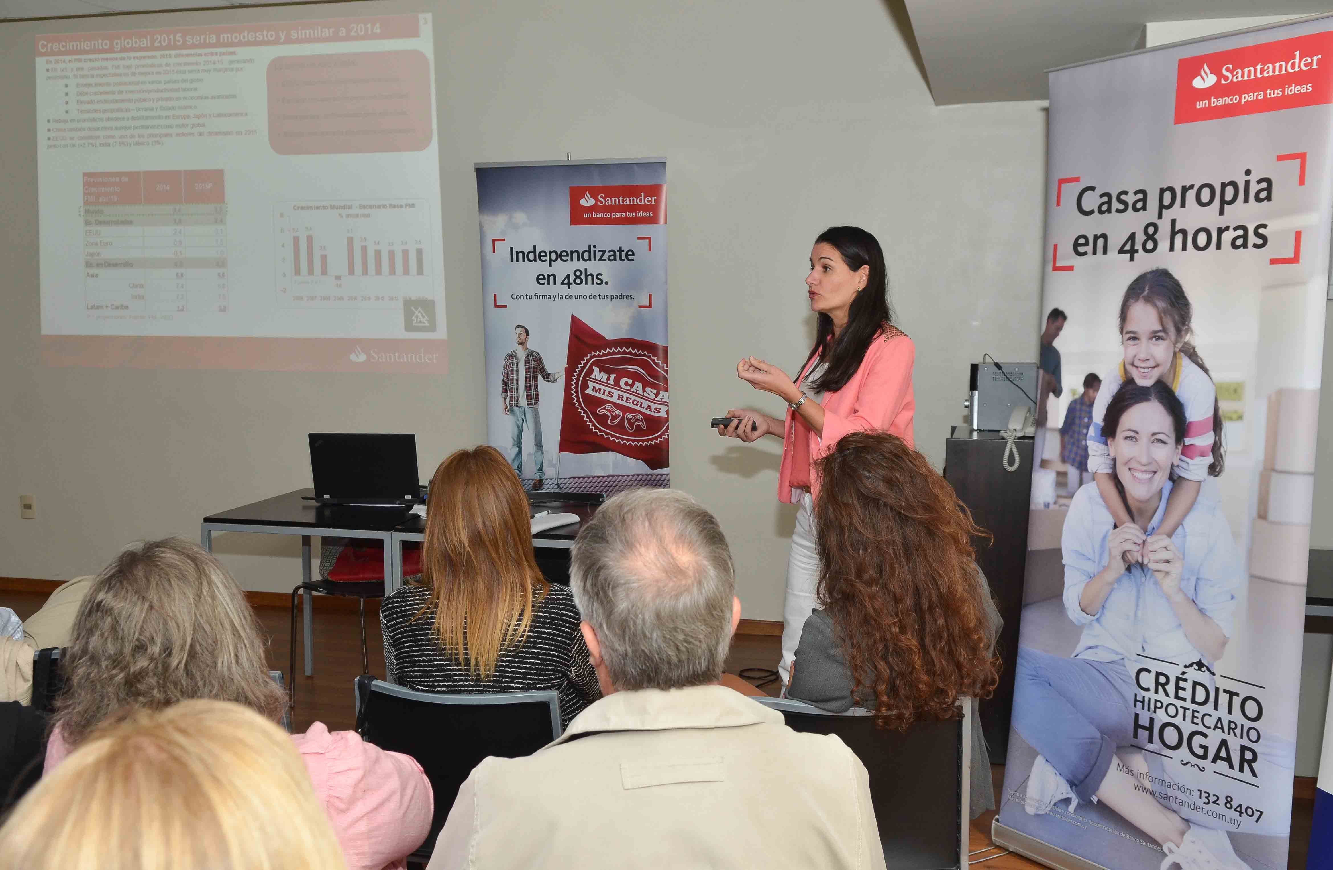 El evento se llevó a cabo como parte del convenio existente entre Santander y la ADIU, que contempla la generación de alianzas comerciales entre ambas partes y también la realización periódica de charlas y conferencias que permiten a las inmobiliarias conocer de primera mano las proyecciones económicas de la entidad financiera.