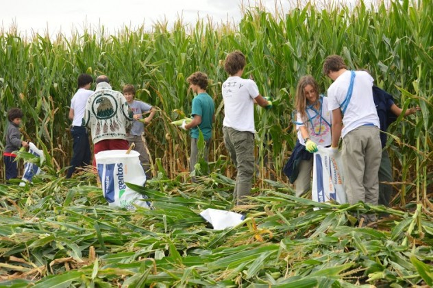 Como es tradicional, la acción consistió en recolectar manualmente una hectárea de maíz, donada por un productor agrícola, en un predio ubicado en la zona de Camino de los Horneros, próximo a La Tahona.