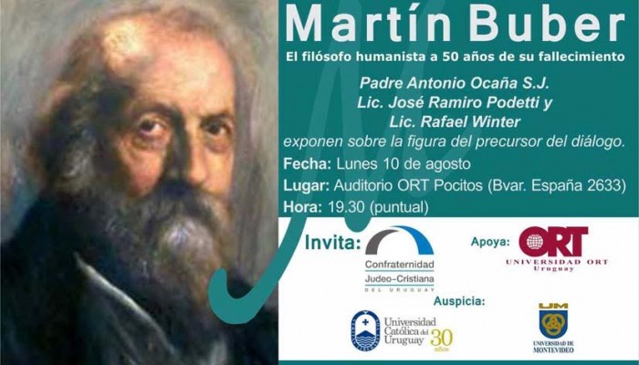 Martin Buber fue un profesor y filósofo judío nacido en Viena en 1878 que supo atravesar la tormenta de la persecución Nazi trabajando en defensa de su pueblo desde sus clases de filosofía, en la fundación de revistas donde exponía sus principales ideas, como también en la integración de organismo en los cuales logró defender algunos ataques del régimen nazi en contra de su pueblo. Hombre de profundidad religiosa también de dedicó al estudio de textos místicos, a la traducción de la Biblia hebrea al alemán (esto ayudado por su capacidad de ser multilingüe: hebreo, yidis, alemán, francés y polaco). Luego de ser reconocido con varios premios por su labor y defensa del ser humano en general, se retira a Israel para morir en su Jerusalén querida.