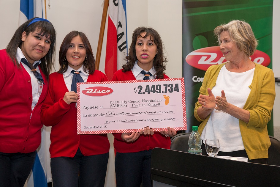 El Centro Hospitalario Pereira Rossell recibió a autoridades y funcionarios de la cadena de supermercados Disco quienes entregaron lo recaudado por la campaña 2015 que se realizó recientemente en todos los locales de la marca en Montevideo.