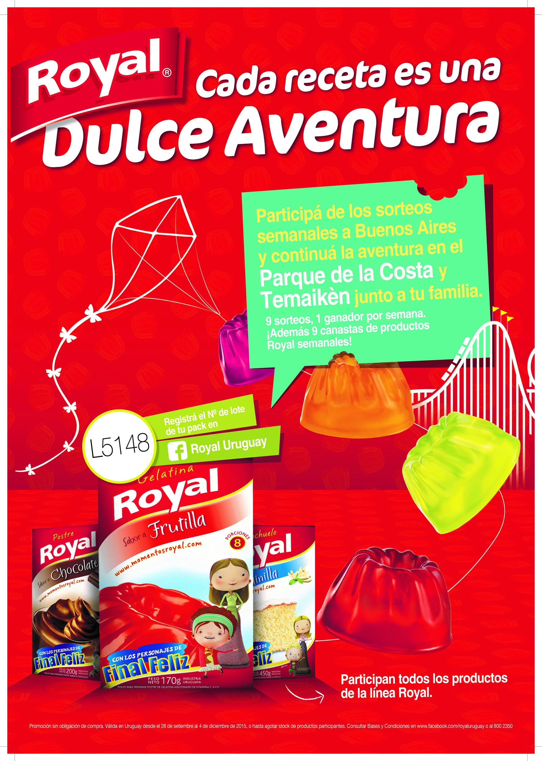 En Uruguay, Royal es la marca más vendida de polvos para preparar postres. Bajo la marca, que pertenece a Mondelēz International, se comercializan polvo para hornear, postres, gelatinas, flanes y bizcochuelos. Los orígenes del polvo para hornear Royal se remontan a 1863, cuando en Fort Waye, estado de Indiana, Estados Unidos, los farmacéuticos Thomas Biddle y James Hoaglkand lo crearon mezclando bicarbonato de sodio y chemor tártaro. Además de su valor de tradicionalidad, la marca es garantía de confianza: fue el primero en fortificar su línea, es el único que cuenta con la tecnología de postres sin cocción y fue el primero en lanzar un portafolio light dentro de la categoría.