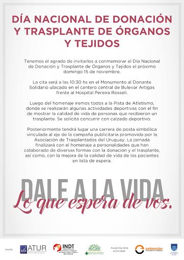 El Día Nacional de Donación y Trasplante de Órganos y Tejidos, por Ley 17.406 de 2001 se decretó el tercer domingo del mes de noviembre de cada año.