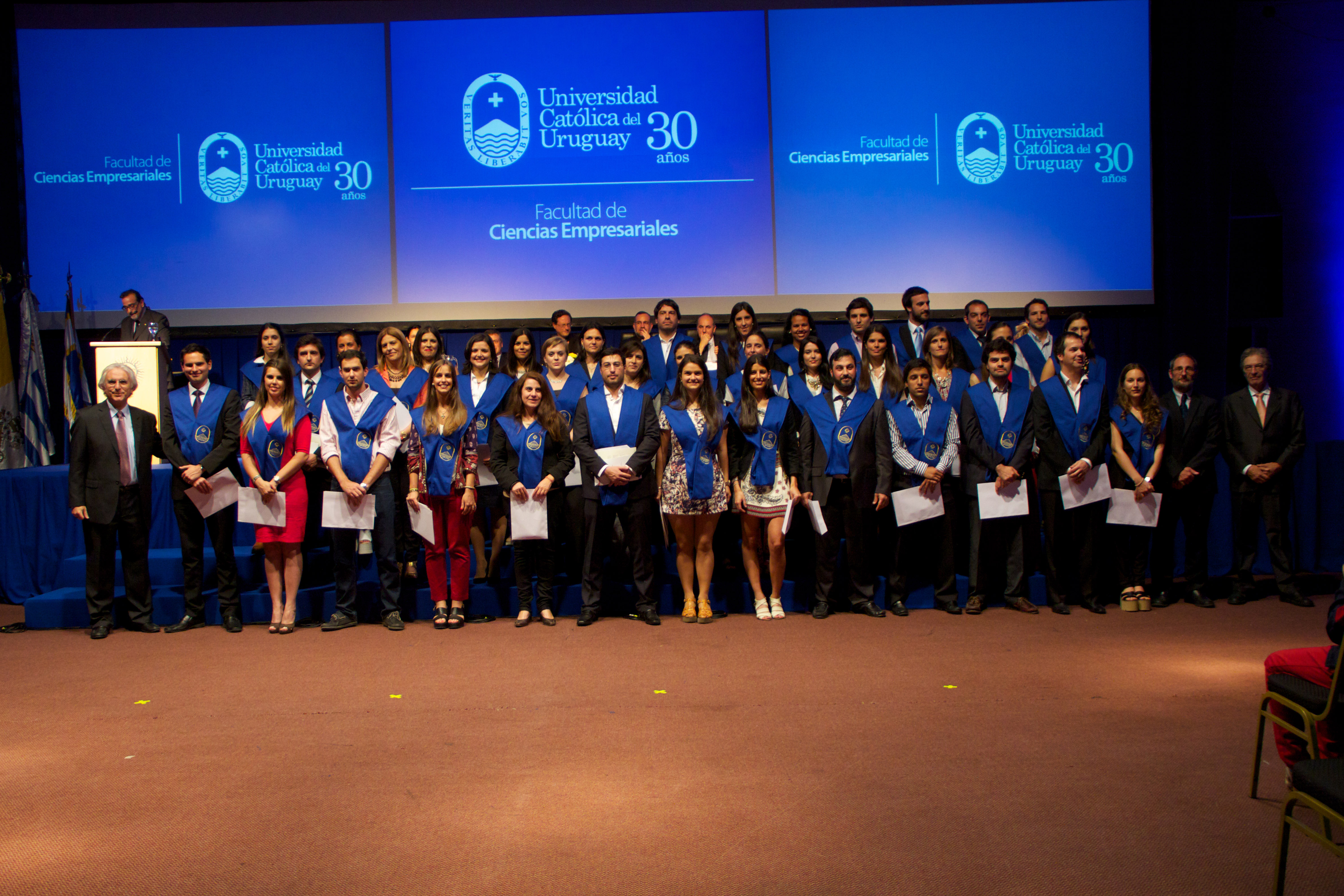 El salón Los Robles estaba completo. Casi 1500 personas entre graduados, familiares, amigos y autoridades se reunían para celebrar el Acto de Colación de Grado y de la Maestría en Dirección de Empresas (MBA) de la Facultad de Ciencias Empresariales de la Universidad Católica del Uruguay.