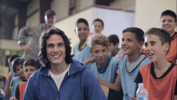 Los jóvenes, que pensaban que estaban siendo filmados para un programa deportivo, quedaron maravillados cuando el ayudante técnico, hizo maravillas en la cancha y al quitarse la capucha develó que era su ídolo Edinson Cavani.