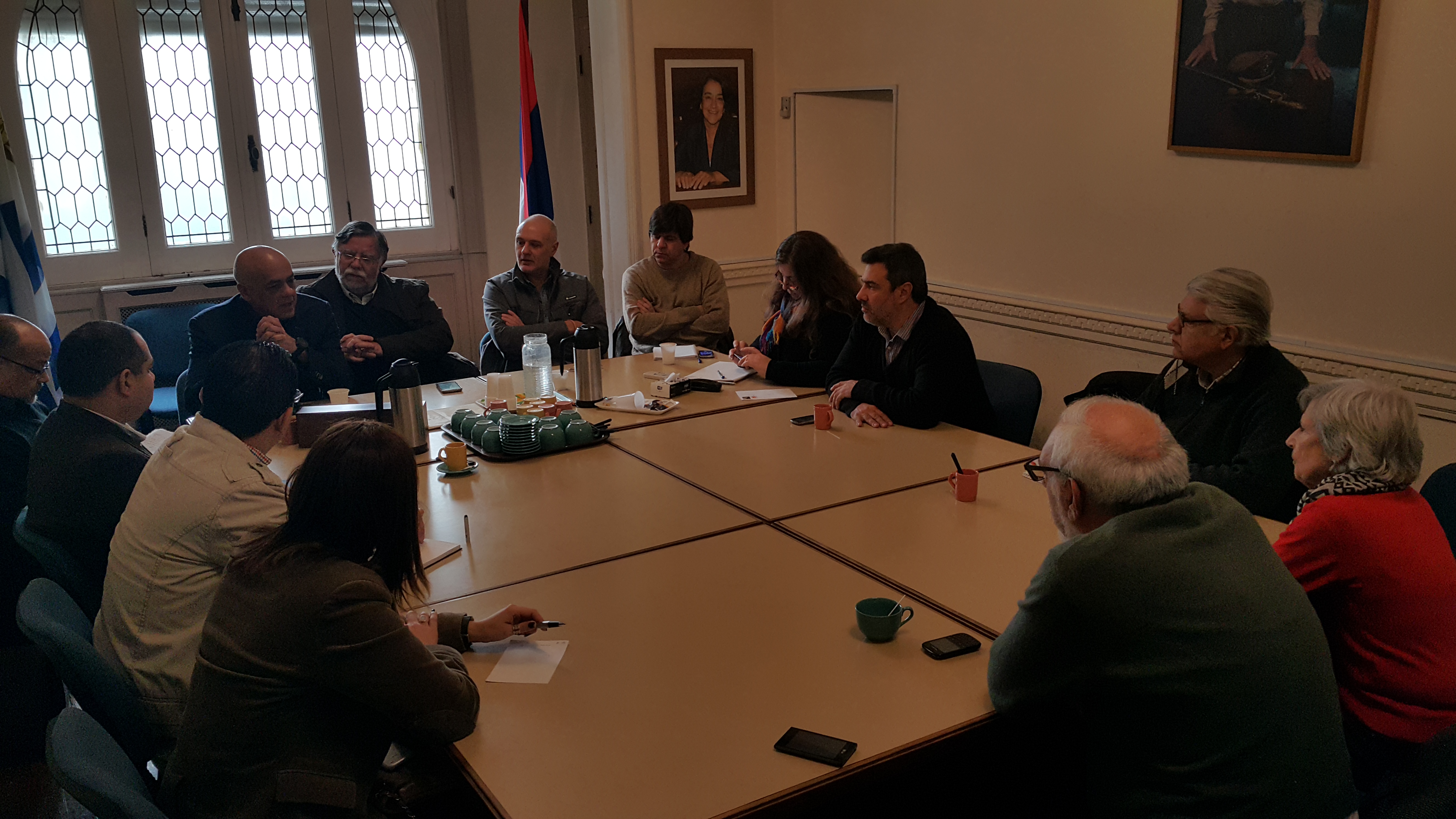 Cerrando su jornada de trabajo en Montevideo, Jorge Rodríguez fue recibido por una delegación del Secretariado del Frente Amplio (organización que nuclea a la izquierda política uruguaya) y de su Comisión de Asuntos y Relaciones Internacionales (Carifa).