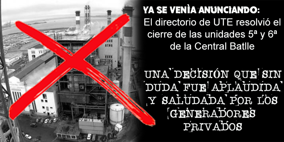 “El día lunes 4 de julio, se notificó formalmente al sindicato acerca de una resolución que tomó el directorio de UTE: la desafectación definitiva de las unidades 5ª  y  6ª  de Central Batlle. Luego de que el año pasado se le diera de baja la unidad SALA B, sumado ahora estas unidades que son las que más energía aportaban, se dan de baja a 263 Megavatios de energía térmica de UTE, es decir que hoy se da un paso muy importante en consolidar la dependencia de nuestro país hacia los generadores privados.