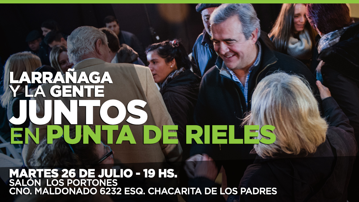 En el marco del ciclo «Larrañaga y la gente, juntos», el martes 26 de julio a las 19:00 horas, el senador Jorge Larrañaga (Alianza Nacional) estará en Punta de Rieles, participando de una reunión con vecinos, comerciantes y referentes de la zona, conversando y respondiendo las inquietudes que surjan.