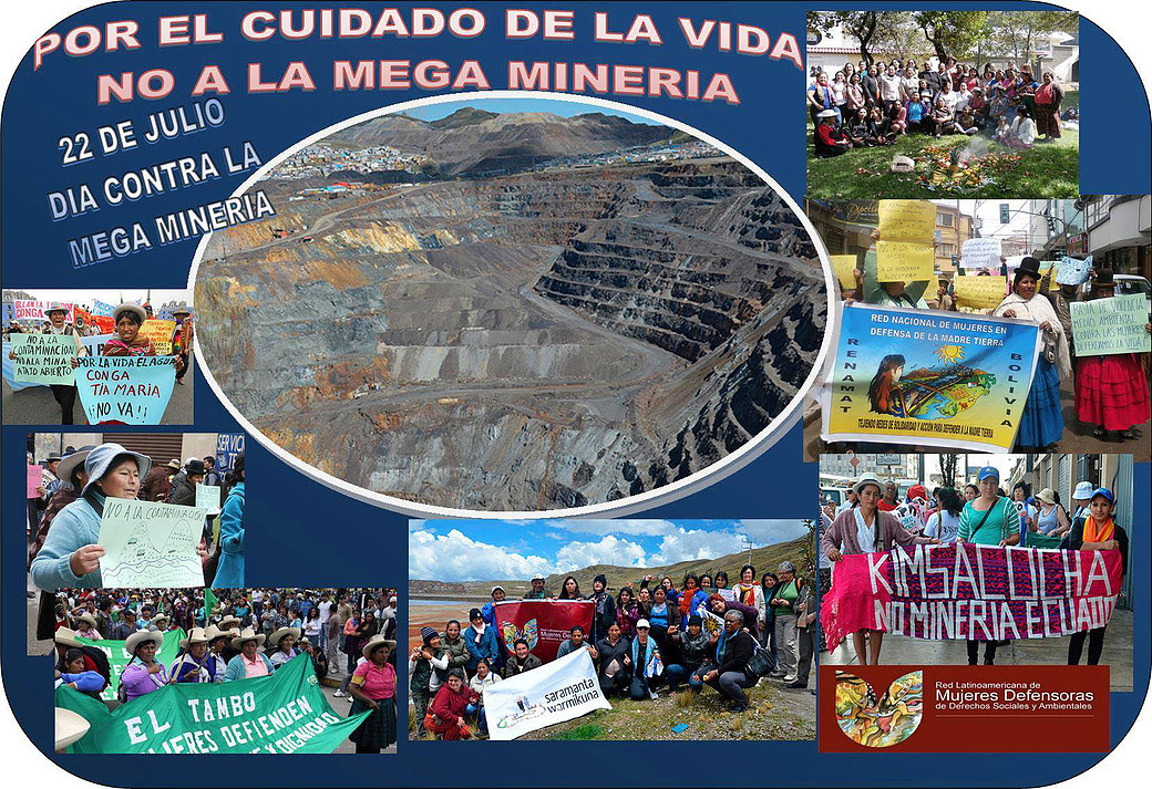 Desde la Red Latinoamericana de Mujeres Defensoras de los Derechos Sociales y Ambientales que articulamos luchas y resistencias de mujeres en Colombia, Bolivia, Ecuador, Chile, Peru, Uruguay, Guatemala, Honduras, El Salvador y México, nos sumamos a denunciar la violencia que generan los mega proyectos mineros sobre los cuerpos y los territorios y a exigir a los gobiernos responsabilidad para detener estos proyectos de muerte.