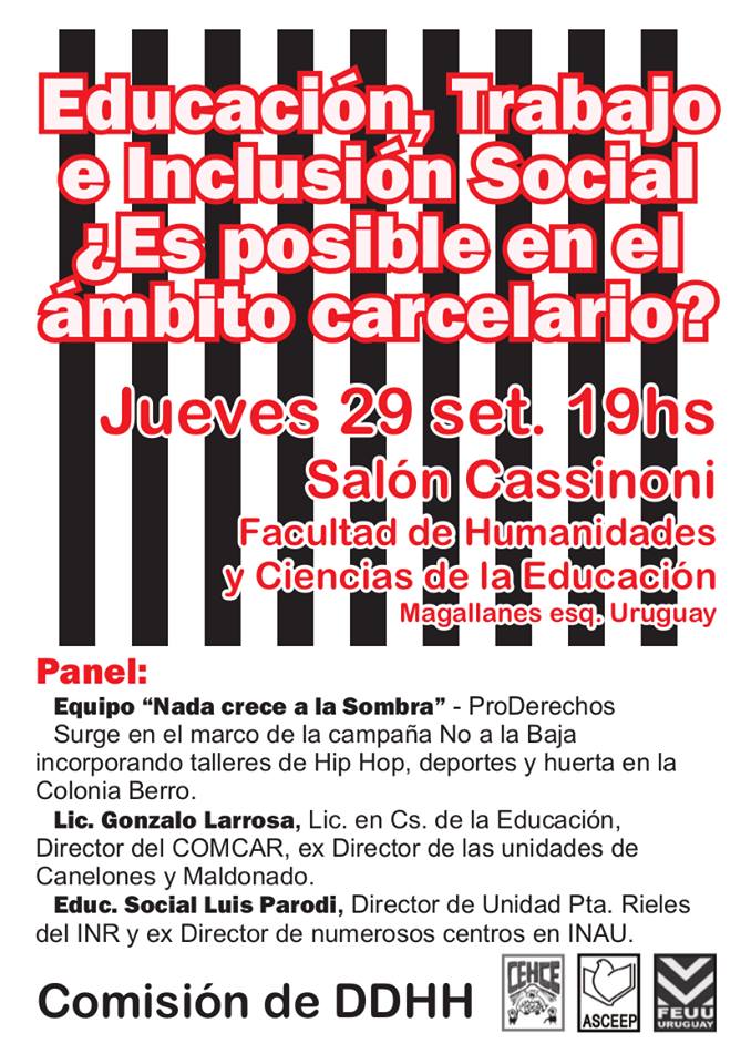 Nos acompañarán equipo Nada Crece a la Sombra, el licenciado Gonzalo Larrosa director del COMCAR y Gonzalo Parodi, educador social y director de la Unidad Punta de Rieles del INR.
