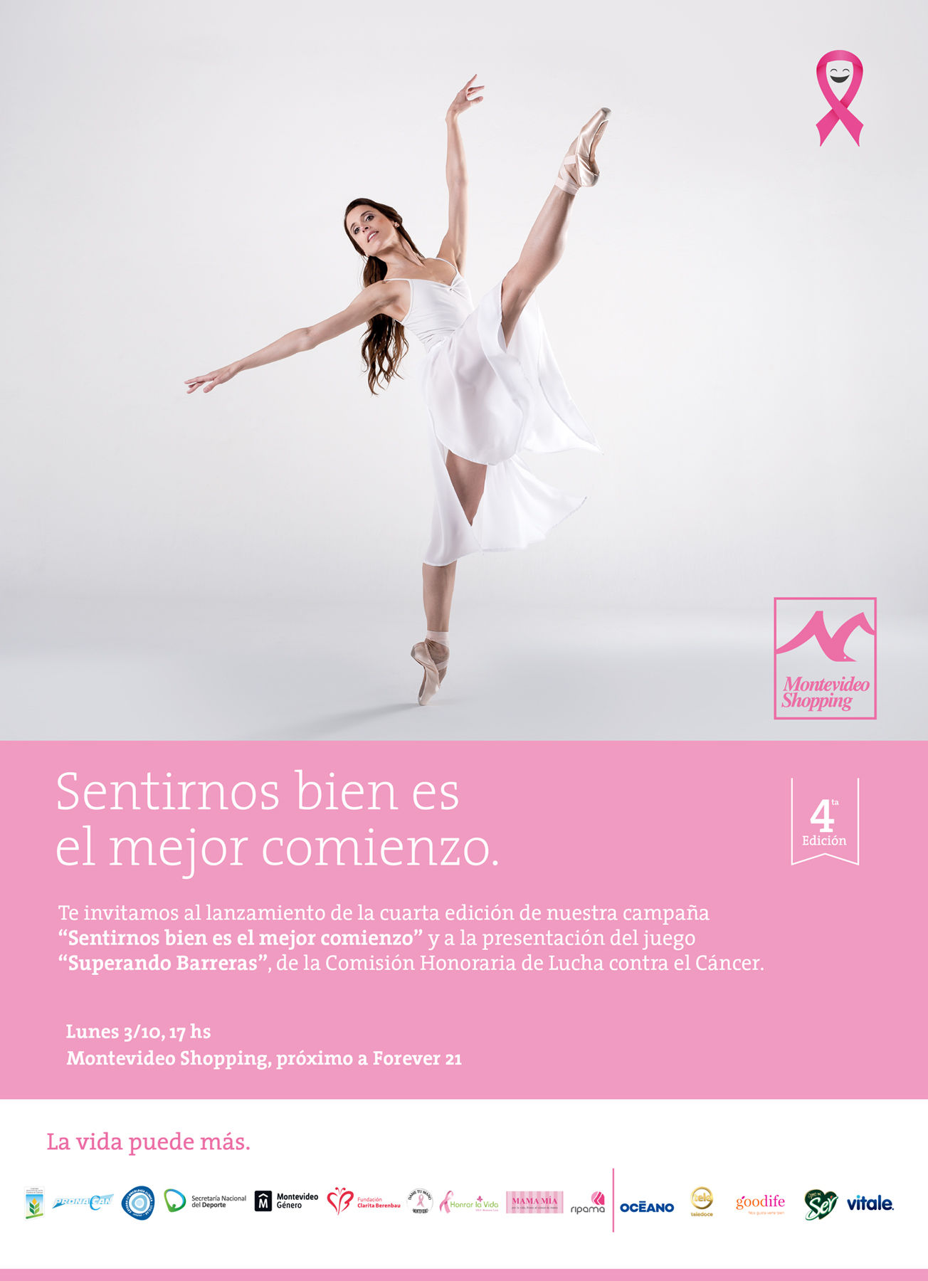 El Lunes 3 de Octubre a la hora 17, en el espacio próximo a Forever 21 de Montevideo Shopping, se lanzará la cuarta edición de la campaña «Sentirnos Bien es el Mejor Comienzo», del Shopping junto a organizaciones civiles y gubernamentales como la Comisión Nacional de Lucha contra el Cáncer que trabajan contra el cáncer de mama, que afecta a miles de uruguayas.