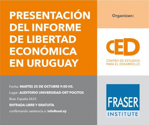 Presentación del Informe de Libertad Económica en Uruguay realizado por el Centro de Estudios para el Desarrollo y Fraser Institue. La presentación estará a cargo de Fred MacMahon del Fraser Institute y Hernán Bonilla, Director Ejecutivo del CED.