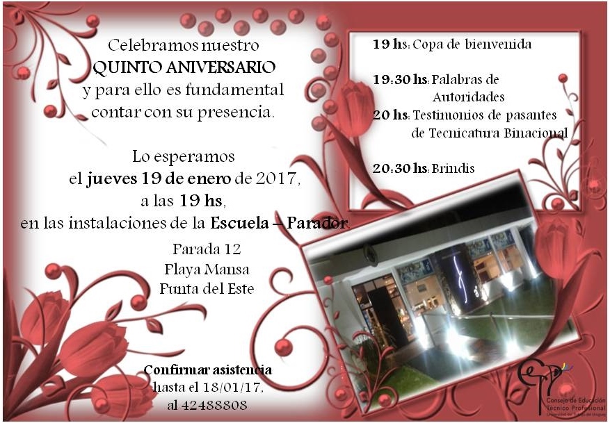 Autoridades de la ANEP, actores del quehacer comercial, empresarial y social local, participarán de la ceremonia de los festejos del QUINTO ANIVERSARIO de la propuesta, que se desarrolla en el Parador de la Parada 12 de la Playa Mansa de Punta del Este, el jueves 19 de enero a las 19 horas.