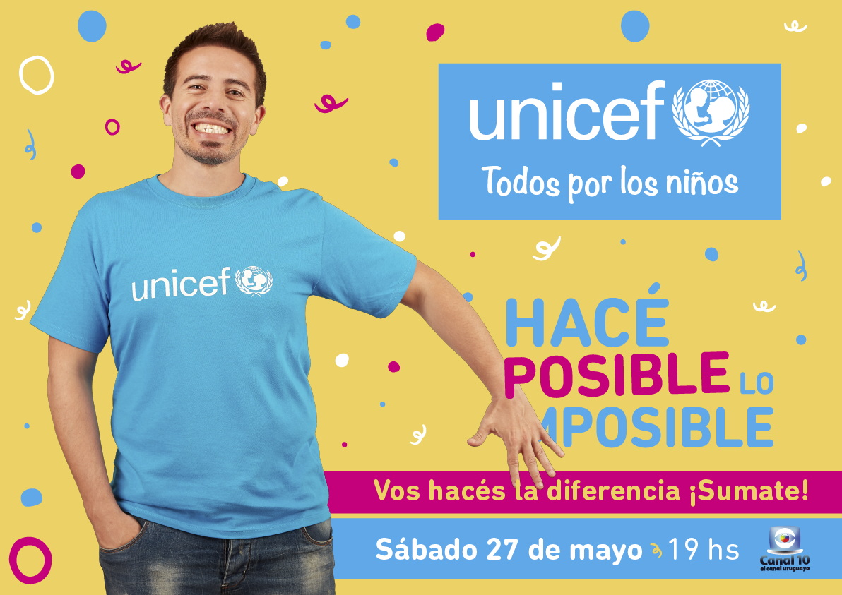 El sábado 27 de mayo desde las 19 horas UNICEF presenta una nueva edición de Todos por los Niños, el ya tradicional programa de televisión que busca recaudar fondos para el trabajo que UNICEF realiza en Uruguay y en distintas situaciones de emergencia en las que trabaja alrededor del mundo. En esta instancia también se da a conocer el trabajo que UNICEF realiza en su misión de promover y proteger los derechos de todos los niños, niñas y adolescentes, tanto en Uruguay como en los distintos países en los que está presente.