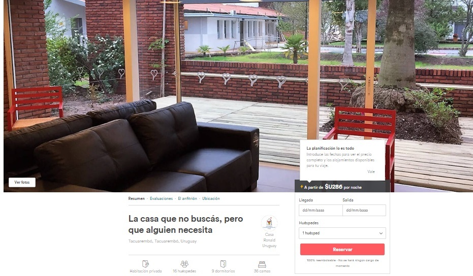 Este año, para celebrar su 5to aniversario en Uruguay, la Asociación y el grupo de innovación The Electric Factory, han ideado una propuesta diferente para invitar a donar, poniendo las Casas Ronald disponibles para hacer una reserva solidaria en Airbnb, la web donde se encuentran las casas que esperan huéspedes.