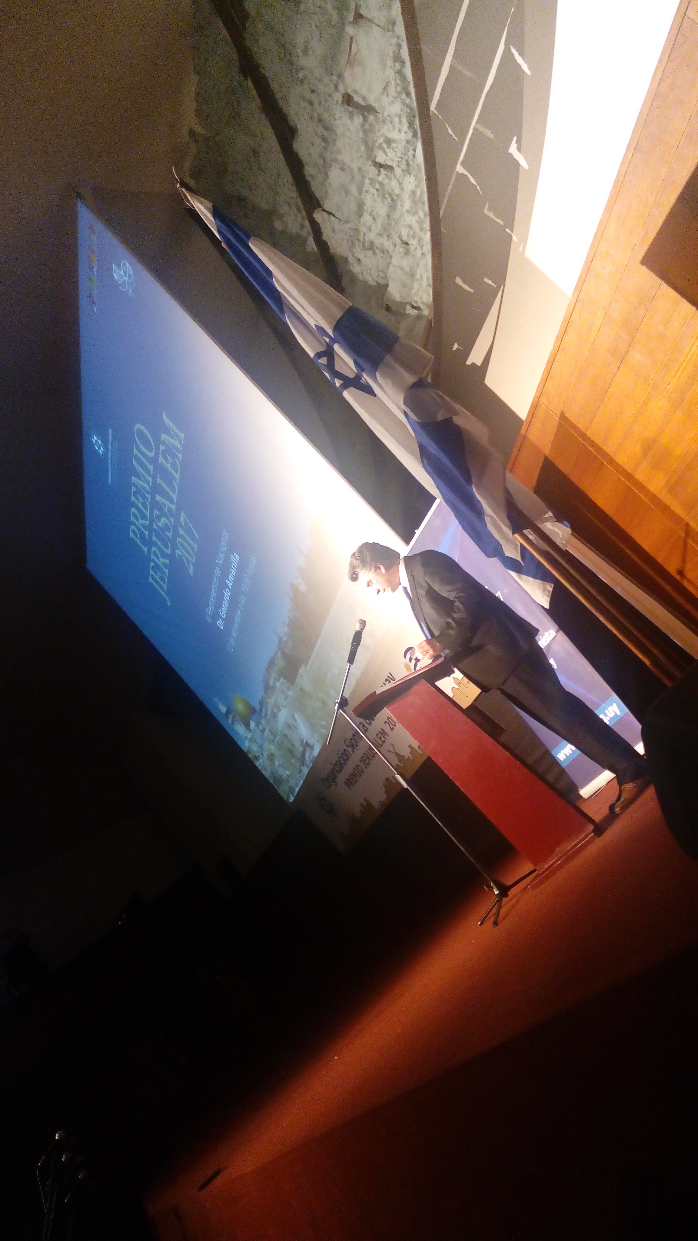 En primer lugar deseo realizar el agradecimiento a la Organización Sionista del Uruguay por este Premio que fuera instituido en 1990 por el señor Alcalde de Jerusalén y la Organización Sionista Mundial.