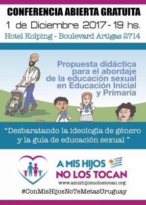 Este Viernes 1º a la hora 19 el movimiento “A mis hijos no los tocan” llevará a cabo la Conferencia Gratuita en el Hotel Kolping (Bv. Artigas 2714), en Montevideo.