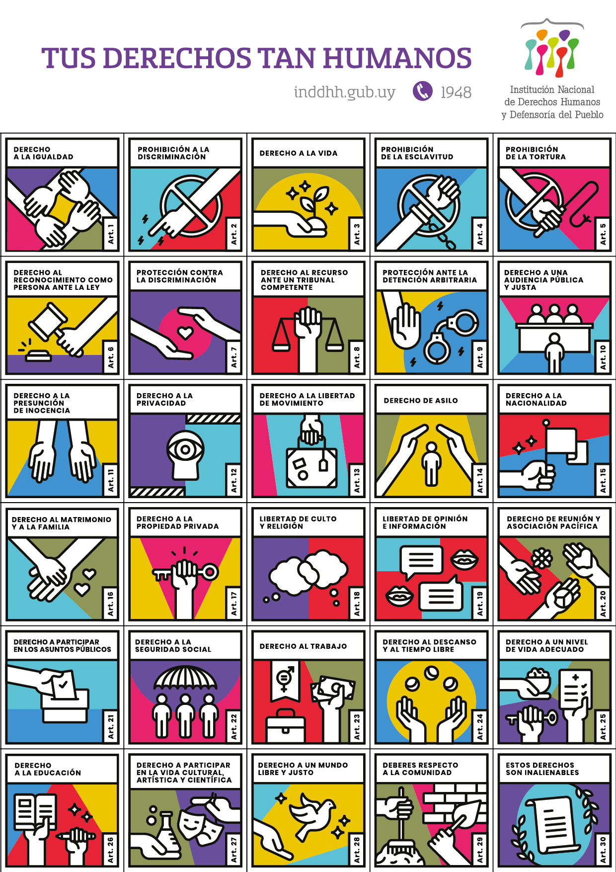 Finalmente, queremos alentarle a sumar esfuerzos para que juntos logremos colocar en el centro de la agenda pública – a nivel local, nacional y global – la Declaración Universal de los Derechos Humanos. Instamos a sumarse y/o generar acciones que hagan de sus enunciados una realidad viva para todas las personas que hoy habitamos el Uruguay y el mundo.
