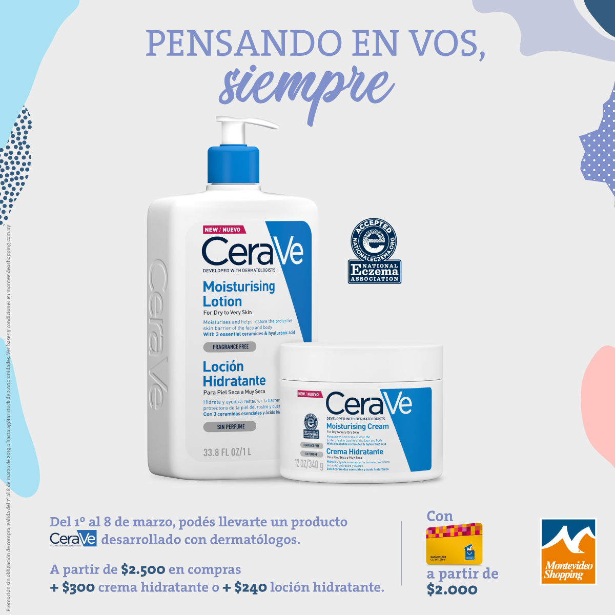 A partir del viernes 1º de marzo, estará a disposición de los clientes una promoción de productos CeraVe, desarrollados por dermatólogos. Estos podrán adquirirse presentando boletas de compra por $ 2.500 y abonando $ 300 para una crema hidratante o $ 240 por una loción, las cuales aseguran la piel hidratada por 24 horas.