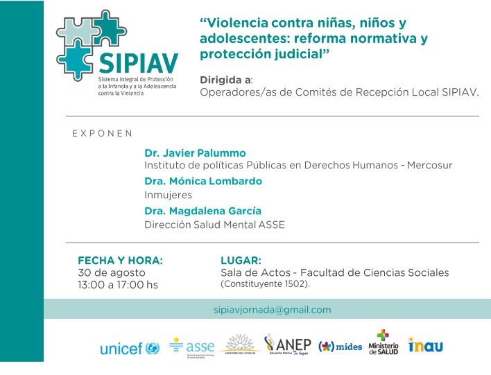 Los cambios generados por la ley 19.747 (abril 2019, modificaciones al capítulo XI del Código de la Niños y Adolescencia) y la ley 19.580 (modificación a disposiciones del código civil y código penal) será el tema abordado por el seminario “Violencia contra niñas, niños y adolescentes: reforma normativa y protección judicial” que tendrá lugar mañana viernes 30 de agosto entre las 13 y 17 horas en la sala de actos de la Facultad de Ciencias Sociales (Constituyente 1502).