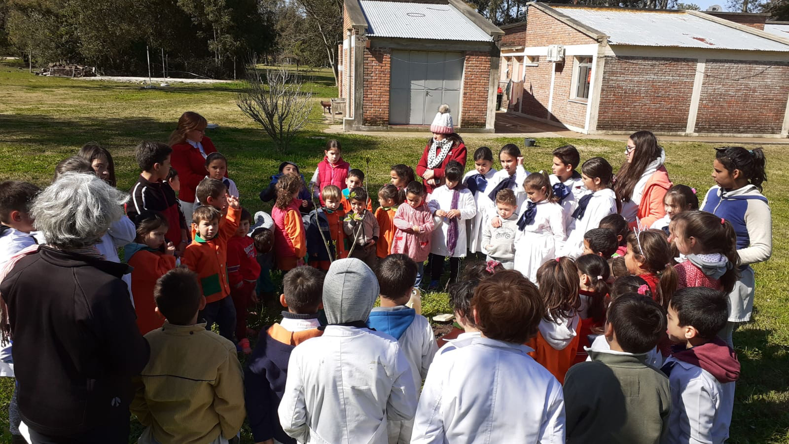 Mariana Costaguta, licenciada en Biología, junto a Mercedes Sorondo y Guillermo Clavell, en representación de la Asociación Civil Amigos del Bosque, se acercaron a la escuela 119 de Santa Ana para realizar una actividad con los niños de entre 3 y 8 años, que incluyó una charla de intercambio sobre cómo crecen los árboles y la importancia de cuidarlos para que se desarrollen adecuadamente.