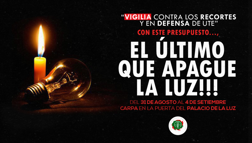 Del lunes 31 de Agosto al 4 de setiembre, los/as trabajadores/as de UTE instalaremos una CARPA en la puerta del Palacio de la Luz para exponer nuestros argumentos y denunciar los terribles recortes presupuestales definidos para el ente.