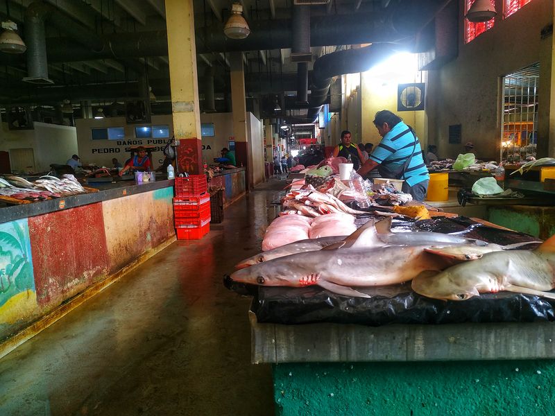 Si, leyeron bien, en la zona donde se vendía pescado, la gran mayoría eran tiburones, y hasta llegamos a ver alguna mantarraya.