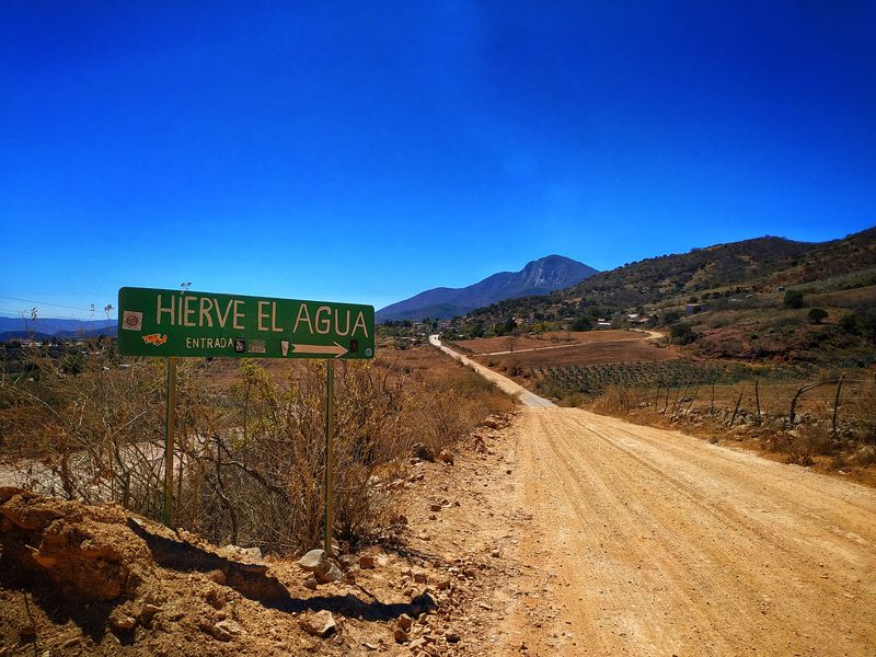 Finalmente, el último cartel que anunciaba “Hierve el Agua” apareció con un fondo de casitas perdidas entre el pasto.