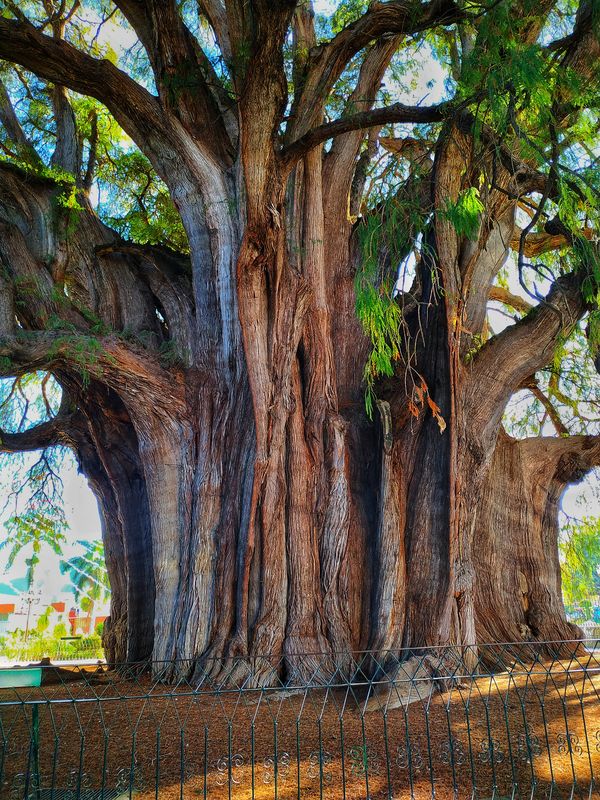 Se dice que son necesarias unas 30 personas tomadas de las manos para abrazar los 44 metros de diámetro que tiene su tronco, porque sí, el árbol de El Tule es conocido por ser aquel con el tronco más ancho del mundo.