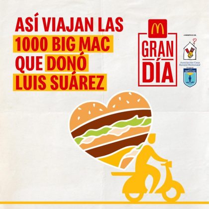 A través de esta acción, Luis Suárez donará esas 1000 hamburguesas a la Liga de baby Fútbol de Pando para que puedan disfrutar de un lindo momento y, a la vez y al mismo tiempo, ayudar a las instituciones a las que beneficia el Gran Día.