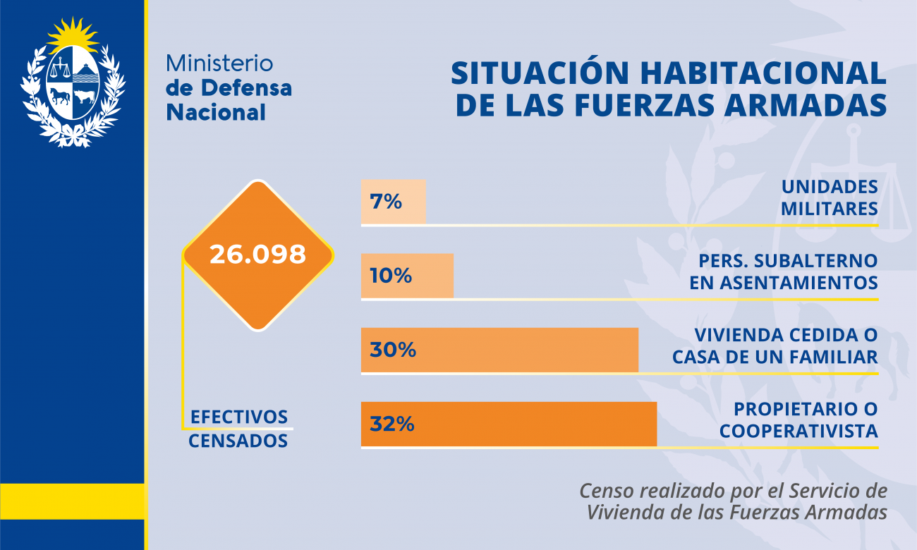 Unos 1862 militares viven en las unidades militares, según se desprende de un censo de vivienda realizado por el Servicio de Vivienda de las Fuerzas Armadas, que además estableció que un 32% es propietario o cooperativista y un 30% vive en la casa de un familiar o «cedida».