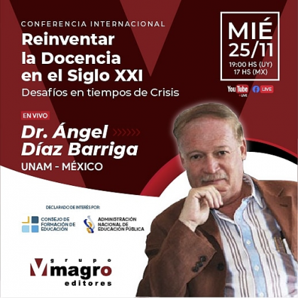 Continuando con el Ciclo de Actividades de Grupo Magro Editores, invita para el Miércoles 25 de Noviembre a las 19 horas a la Conferencia Internacional, «REINVENTAR LA DOCENCIA EN EL SIGLO XXI. Desafíos en tiempos de Crisis», del Dr. Ángel Díaz Barriga (UNAM – MÉXICO).