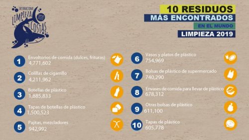 La Limpieza de Costas de 2019 nos permitió conocer mejor que tipo de residuos llegan a las playas del mundo. Colillas, envoltorios de comida, botellas y tapitas plásticas fueron los más encontrados.