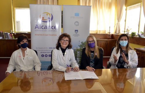 En representación de Alcance, Andrea Russo, gerenta Comercial y de RSE, firmó el contrato de donación del equipo en un acto en el que participaron la directora del Hospital de Clínicas, Dra. Graciela Ubach, la Dra. Lucía Delgado, coordinadora de la Unidad de Oncogenética, la Dra. Nora Artagaveytia, integrante de la Unidad de Oncogenética y la Dra. Cristina Touriño, directora Académica del Hospital de Clínicas.